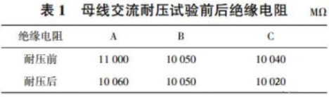 從耐壓試驗(yàn)進(jìn)程和表1絕緣電阻數(shù)據(jù)來(lái)看,該35kV 高壓充氣柜母線耐壓試驗(yàn)合格。