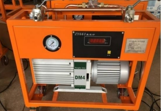 4)最有用最專業(yè)的辦法,是SF6抽真空補(bǔ)氣設(shè)備,單級(jí)旋片泵極限真空度可以抵達(dá)10Pa,雙級(jí)旋片泵理論極限真空度可抵達(dá)6.2*10-4pa,可是流量不大于100m3/h;