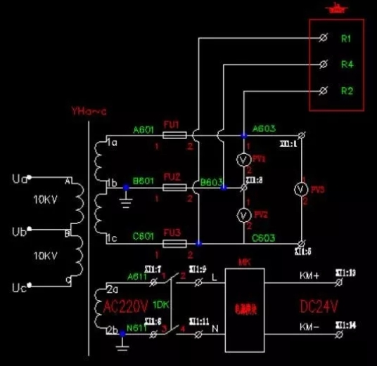 一、高壓充氣柜帶電閃現(xiàn)器回路