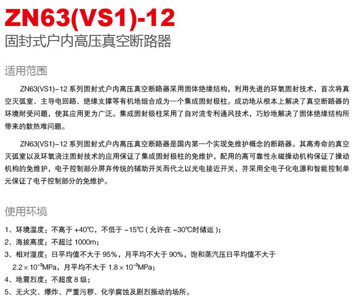 ZN63(VS1)-12固封戶內(nèi)高壓真空斷路器